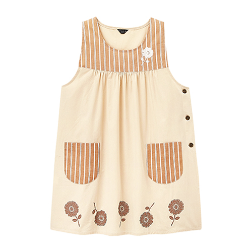 ●サイズ/丈: 90㎝、幅:56㎝●素材/生地部分:ポリエステル65%、綿35%、別布部分:綿55%、ポリエステル45%●ボタン/左脇
