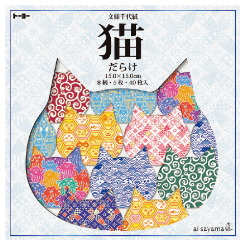 ●内容/8種40枚、猫の形のお皿と小物入れ折図●サイズ/15㎝角●坪量/64g/㎡●紙厚/約0.08㎜