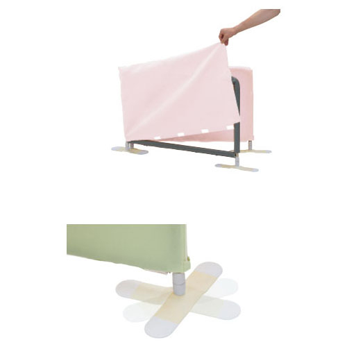 L字型に設置や折りたたみも可能。生地は家庭用洗濯をしても抗ウイルス・制菌効果を維持。