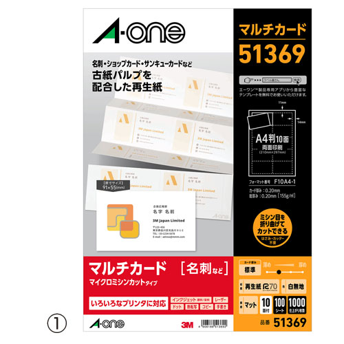 【エーワン】 マルチカード名刺用紙マイクロミシンカット10面
