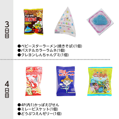 ※「吊り下げ菓子」(連菓子等)は切り離し1袋ずつ、また、「大袋菓子」は個装1個ずつお配りください。