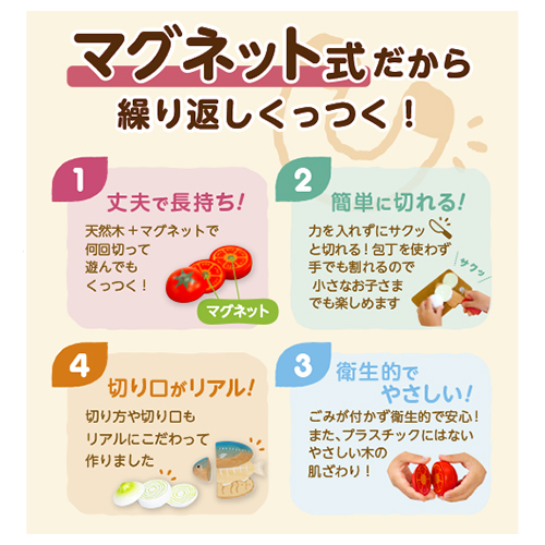 埋め込み式のマグネット。力を入れずに切れるので小さなお子様も楽しめる。
