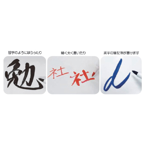 コシのある筆タイプで、文字の強弱(太い・細い)が自由自在!漢字やひらがなの「はらい」や「はね」を表現できる。