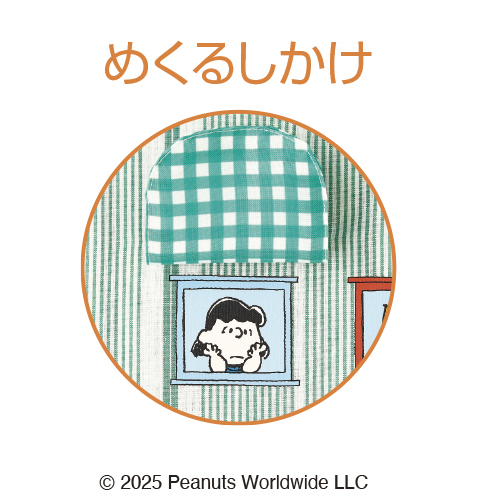 スヌーピーの犬小屋がプリントされた大きなポケット付。ポケットは背中にもあるのでとっても便利。