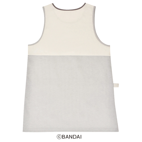 ●サイズ/丈:84㎝、幅:54㎝●素材/本体:ポリエステル98%、ポリウレタン2%、後ろ上部:ポリエステル65%、綿35%●ボタン/左脇●タオルホルダー付
