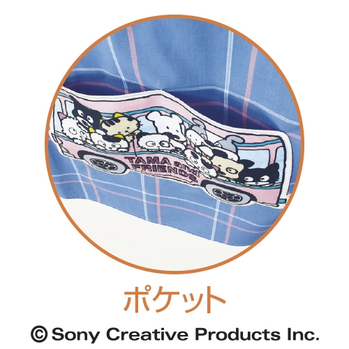 バスに乗って出発進行!大きなポケットにはたくさんのキャラクターがプリントされています。