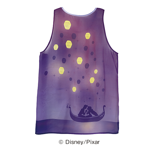 軽やかなシフォンとサテンの縁取りがおしゃれ!背中にはキャラクターやランタンのシルエットがプリントされています。