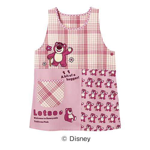 ロッツォがたくさん!柔らかなピンクのチェック柄エプロンです。
