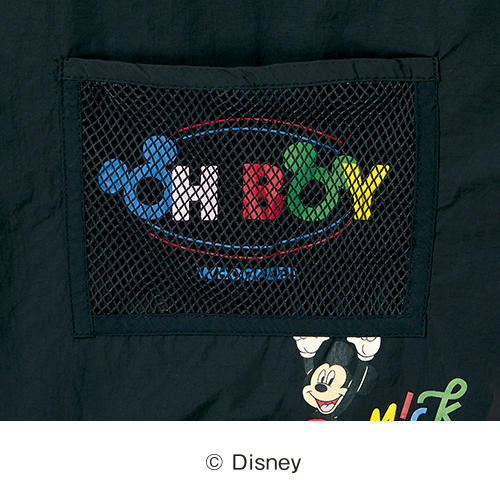 ポケットが3つ!メッシュポケットにはミッキーマウスがぶら下がっているよ。