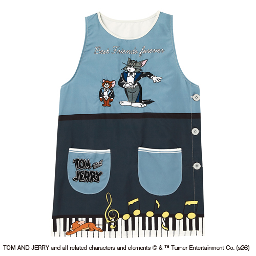 ピアノの鍵盤がモチーフのシックなエプロン。どんな音楽を奏でているのかな。
