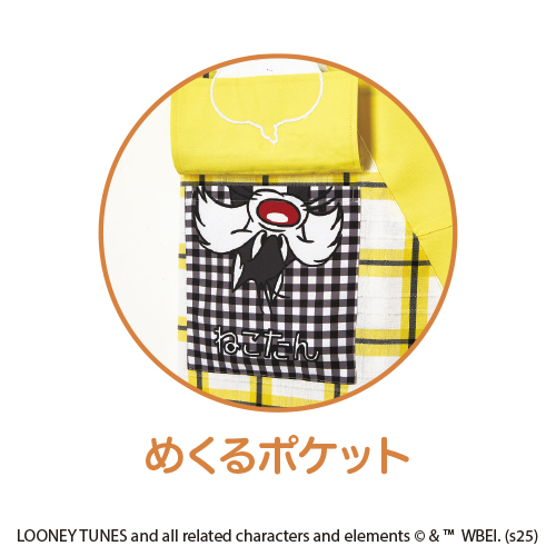 色々なポーズのトゥイーティーが描かれています。ポケットのフラップをめくると、シルベスターが登場!