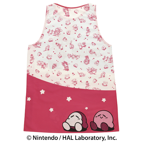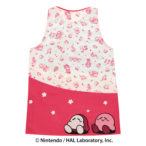 ビビッドな色使いのエプロン。背中はカービィの総柄プリントが施されています。