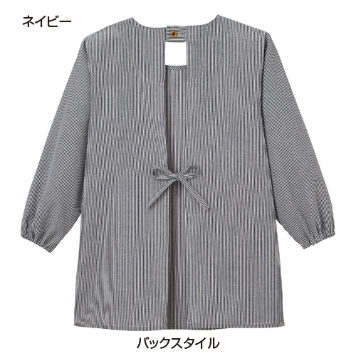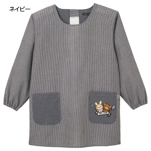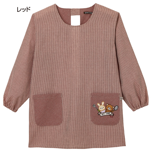 アップリケ刺繍がポイントのかっぽうぎ。