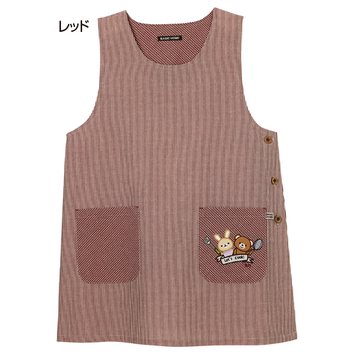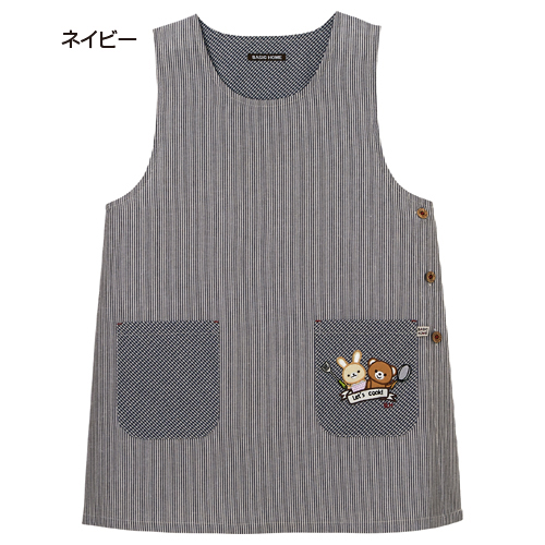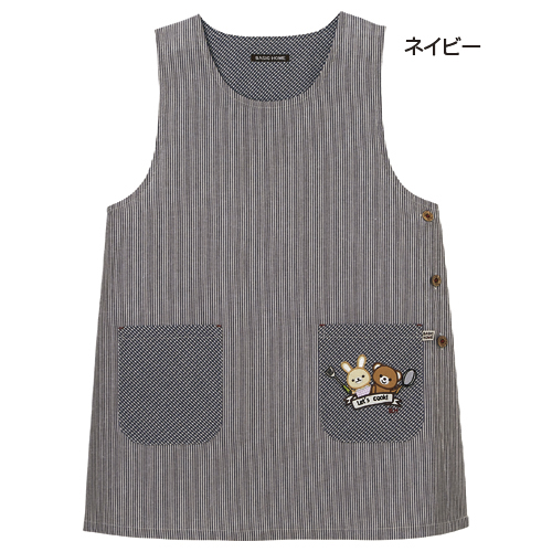 清涼感のある生地のエプロン。動物のアップリケ刺繍がポイント。