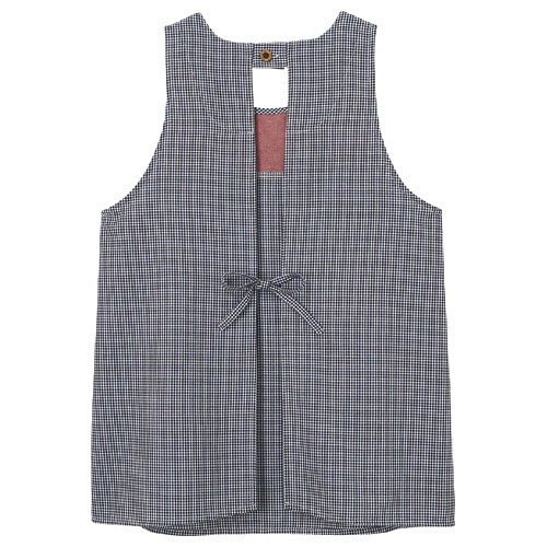 清涼感のある生地のエプロン。動物のアップリケ刺繍がポイント。