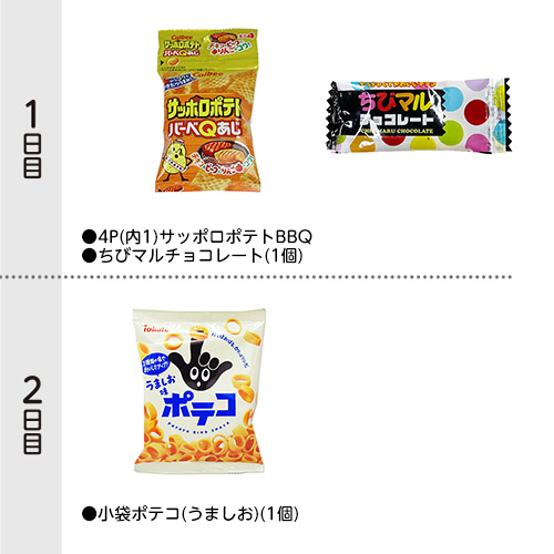 ※「吊り下げ菓子」(連菓子等)は切り離し1袋ずつ、また、「大袋菓子」は個装1個ずつお配りください。