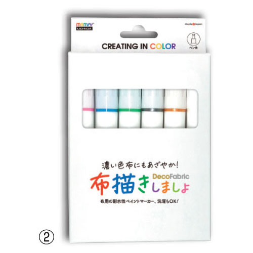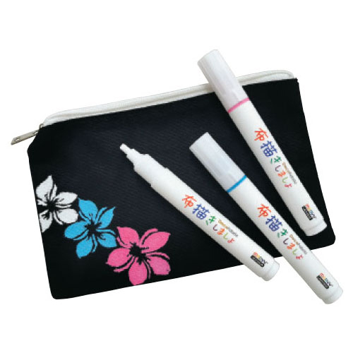 洗濯できる水性顔料布用マーカー!濃い色の布にも鮮やかに描けるインクです。