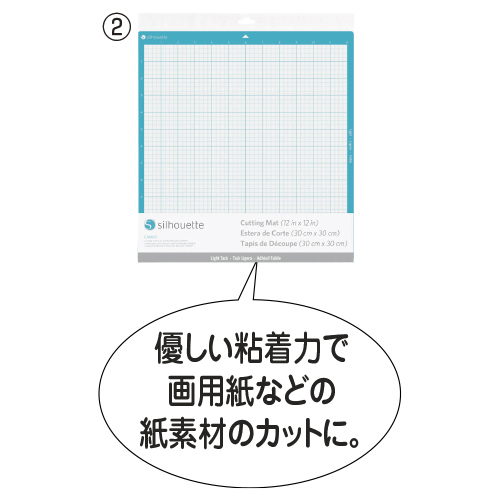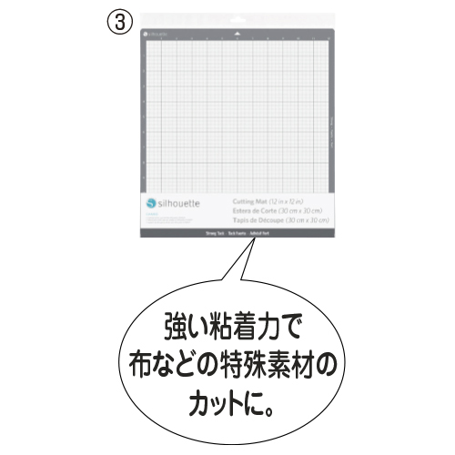 ●推奨素材/(1)カッティングフィルム・アイロンプリントシート(2)画用紙・ケント紙・薄い紙(3)布・フェルト・合皮