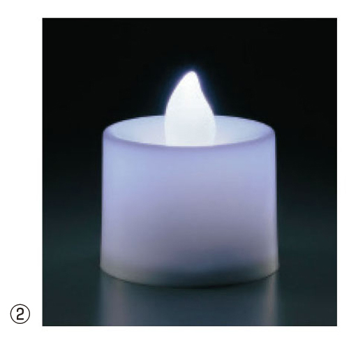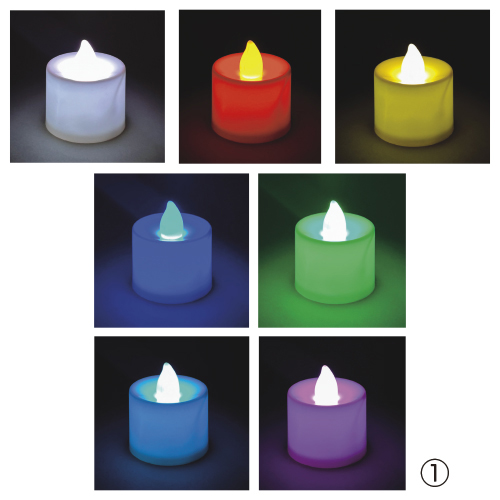 七つの色に変化、白く光る、ゆらゆら揺れて光るろうそく型のライトです。