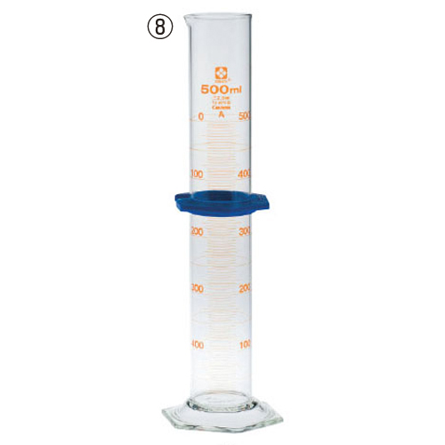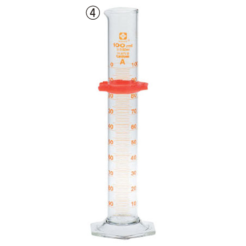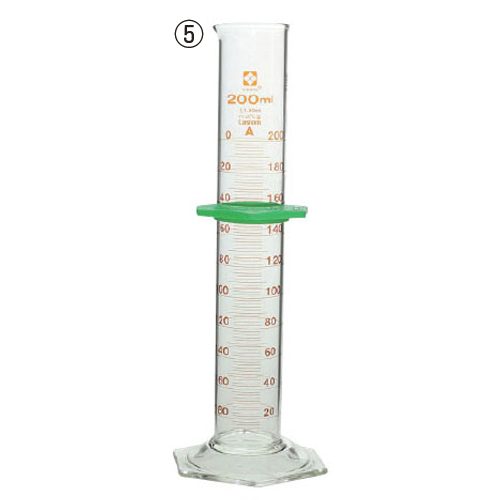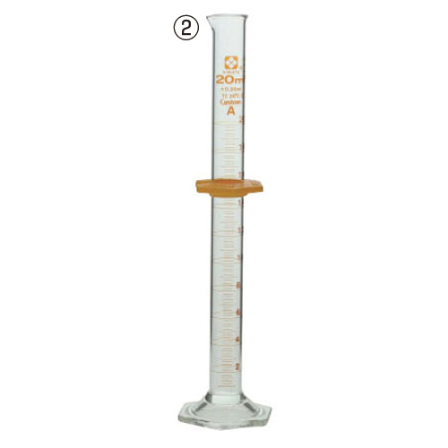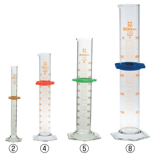 転倒防止バンパー標準付属。JIS クラスA 準拠のメスシリンダー。