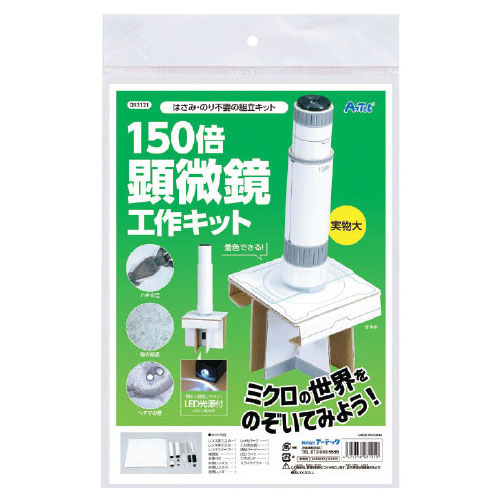 ●内容/レンズ押さえA、レンズ押さえB、レンズスリーブ、接眼筒、本体(白)、対物レンズ大、対物レンズ小、接眼レンズ、しゃ光パーツ、土台用台紙、連結パーツ、LEDライト、工作ボンド、スライドグラス×2●サイズ/組立時:約90×90×120㎜●材質/紙、PMMA、EVA、PVA、PP