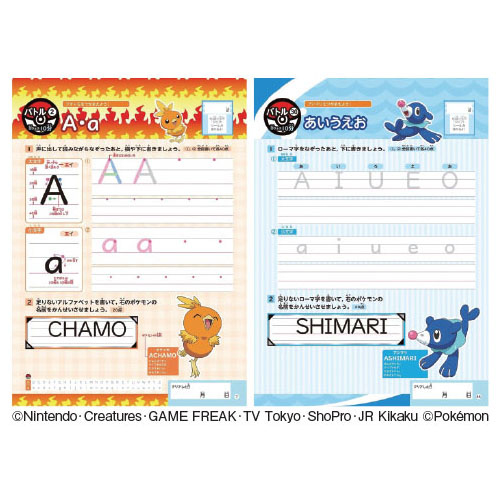 アルファベットやローマ字の読み方・書き方、英単語などをポケモンと一緒に学ぶドリルです。