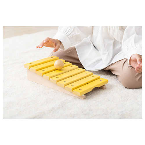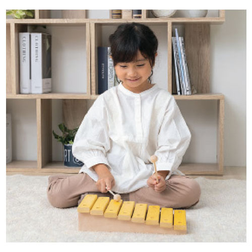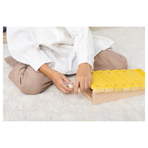 音盤が階段状に取り付けられた木琴。ハ長調の1 オクターブできちんと調律されています。