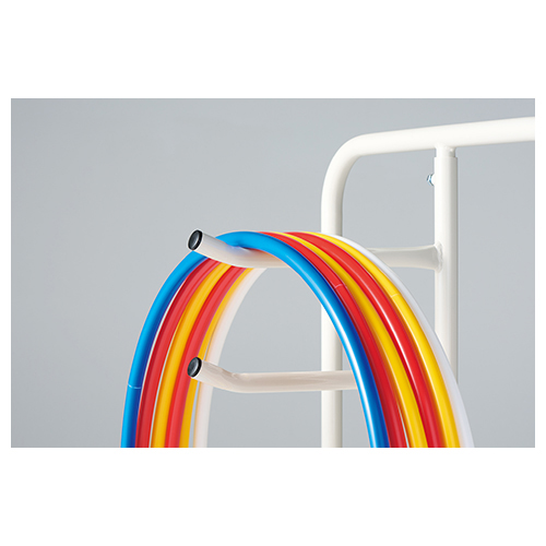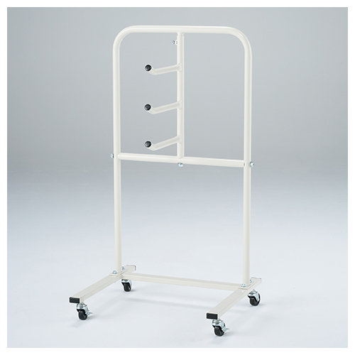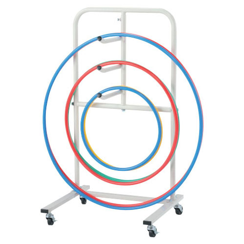 ●サイズ/幅57×奥行50×高さ108㎝●重量/7.7㎏●材質/スチール(直径2.7㎝)●キャスター5㎝(2個ストッパー付)●体操リング各段15本収納可能●必要工具/スパナ(13㎜)