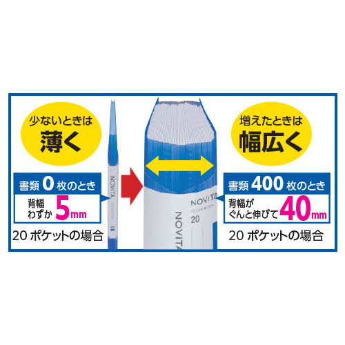 書類の収納量に応じて背幅が変わるのでスリムに収納!