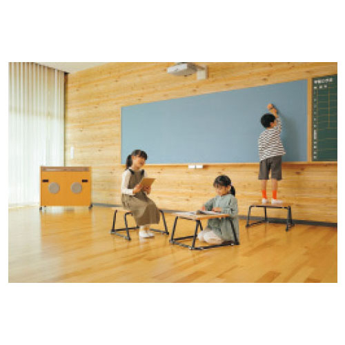 先生のアイディアから生まれた、机、イス、発表台に早変わりするマルチなスツールです。