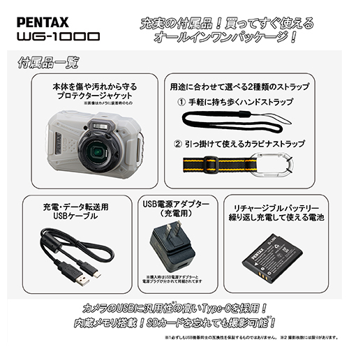 ●付属品/専用バッテリー D-LI96、USB電源アダプター、電源プラグ、USBケーブル、ストラップ、カラビナストラップ、プロテクタージャケット