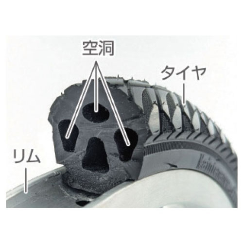 タイヤの中までゴムでできたノーパンク仕様の自転車です。折りたためるのでコンパクトに収納できます。