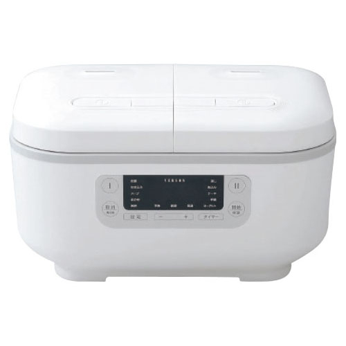 ●サイズ/34.5×23.5×19.5㎝●重量/約3.5kg●容量/3.5合×2●消費電力/700W●電源コード長さ/約1m●付属品/内釜×2、蒸しプレート×2、しゃもじ、おたま、計量カップ