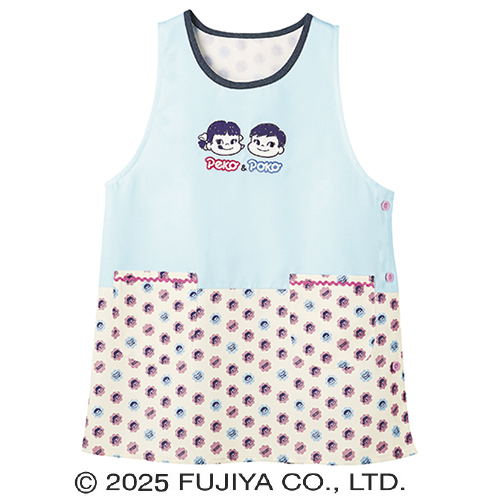 胸元にはペコ&ポコのアップリケ。ミルキーデザインがキュートなエプロン。