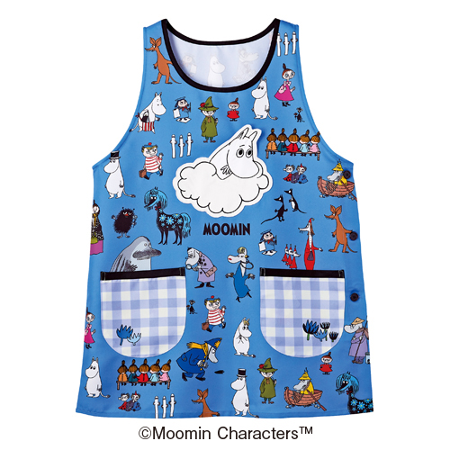 胸元のムーミンはポケットになっています。ムーミンの仲間たちがたくさんのエプロン。