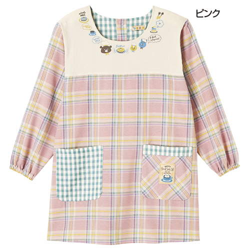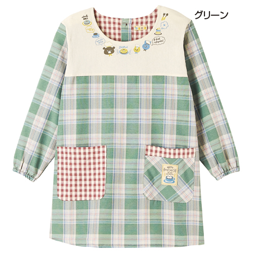 コーヒーとドーナツでほっと一息。首回りのプリントがポイントのチェック柄カッポー。