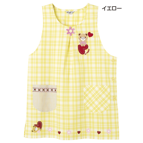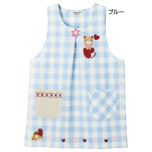 ボタンにはお花のフェルト付。ハートに乗ったくまがとってもキュートなエプロン♡