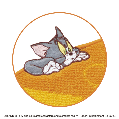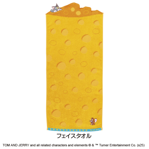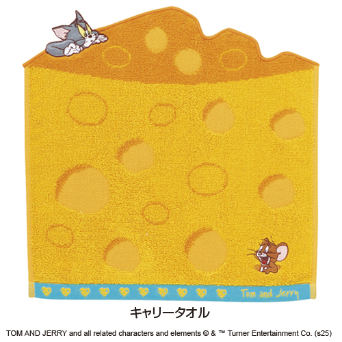 チーズをモチーフにしたタオル。チーズの上にはジェリーを狙うトムがいます。