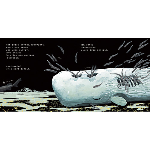 クジラがしんだらどうなる? 深海という厳しい世界に生きるユニークな生きものたちの、いっときの大宴会を描いた物語絵本。