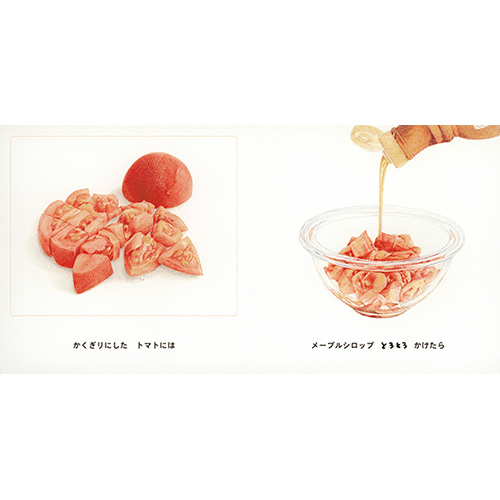 レシピを丁寧に描いた、おいしくて新しいトマトのお料理絵本。