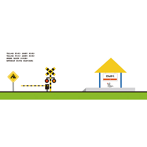 ねずみさんがまってるさんかくえきに、でんしゃがやってきます。あれあれなんだかいいにおい!