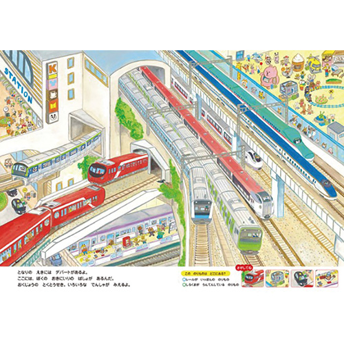 はたらく車、新幹線、飛行機など、子どもが大好きなのりものが登場するさがしえ絵本。