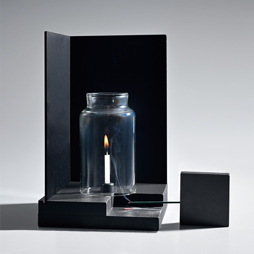 ●サイズ/150×150×225㎜(背面板を取り付けた状態)●材質/底板:メラミン化粧板、背面板:PVC、ろうそく立て:SBR