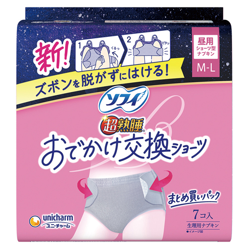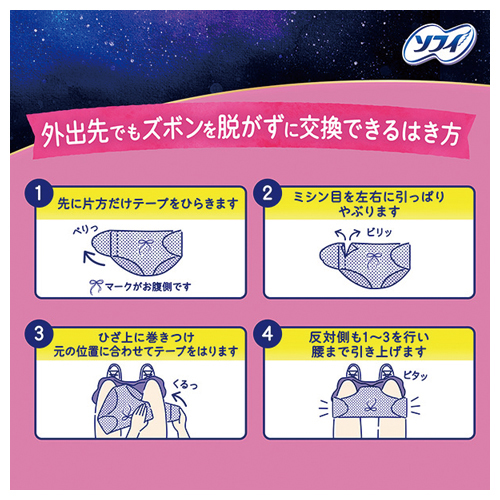 新!ズボンを脱がずにはけるショーツ型ナプキン。最長12 時間分の吸収力。