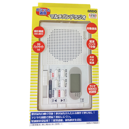 ●周波数範囲/ AM522-1620kHz/FM76-108MHz / SW(短波)3.0-21.85MHzモノラルラジオ、ワイドFM対応●サイズ/ 74×125×28㎜●重量/ 142g(電池含まず)●材質/本体:ABS樹脂、アンテナ:スチール●付属品/ストラップ、両耳イヤホン●単3乾電池×2本(別売)