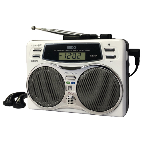 ●カセットプレーヤー/再生・録音(モノラル)/巻戻し/早送り/停止、オートリバース機能/再生時/オートストップ機能/録音・再生時、録音用マイク内蔵/イヤホン端子/ DC5V端子