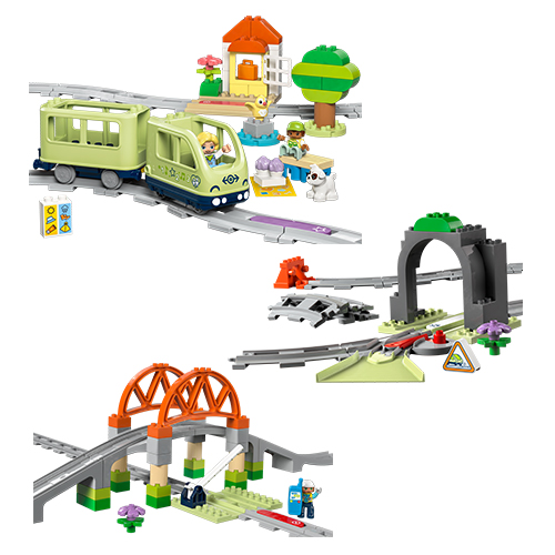 ●内容/デュプロのまち 鉄道レールとトンネル(20ピース)、デュプロのまち ぼうけんトレイン(57ピース)、デュプロのまち 鉄道レールと橋(42ピース)