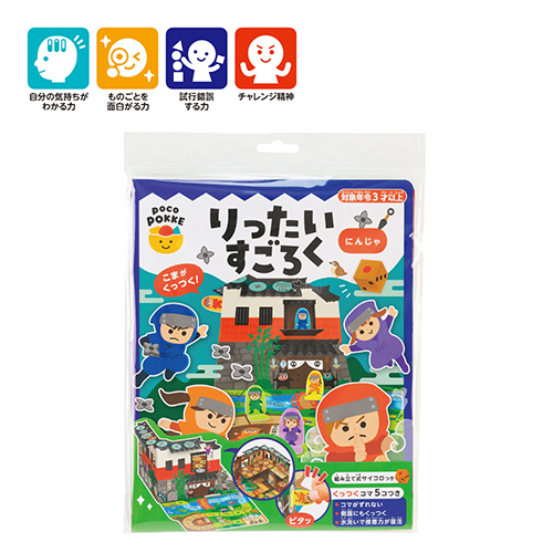 開くと立体になる大迫力すごろく!コマはなんどもはってはがせるぷにピタシール