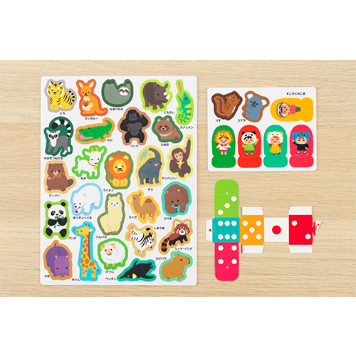 ●内容/本体ボード、シール×32、サイコロ ●材質/本体・サイコロ:紙・PP、シール:TPE・PET