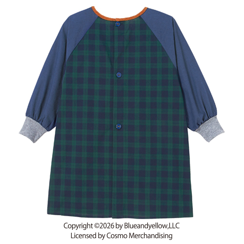 ●サイズ/丈:83㎝、幅:58㎝● 素材/ チェック・無地ネイビー:ポリエステル65%、綿35%、無地ブラウン:ポリエステル100%、袖口リブ:ポリエステル95%、ポリウレタン5%●ボタン/後ろ